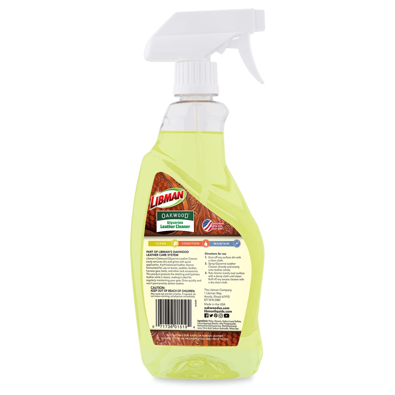 OAKWOOD Libman Glycerine Leather Cleaner (23 Fl Oz) - CASE of 6 - Cleans & Hydrates Leather Saddles, Tack, Boots, Furniture, and Harness Gear - Made in the USA