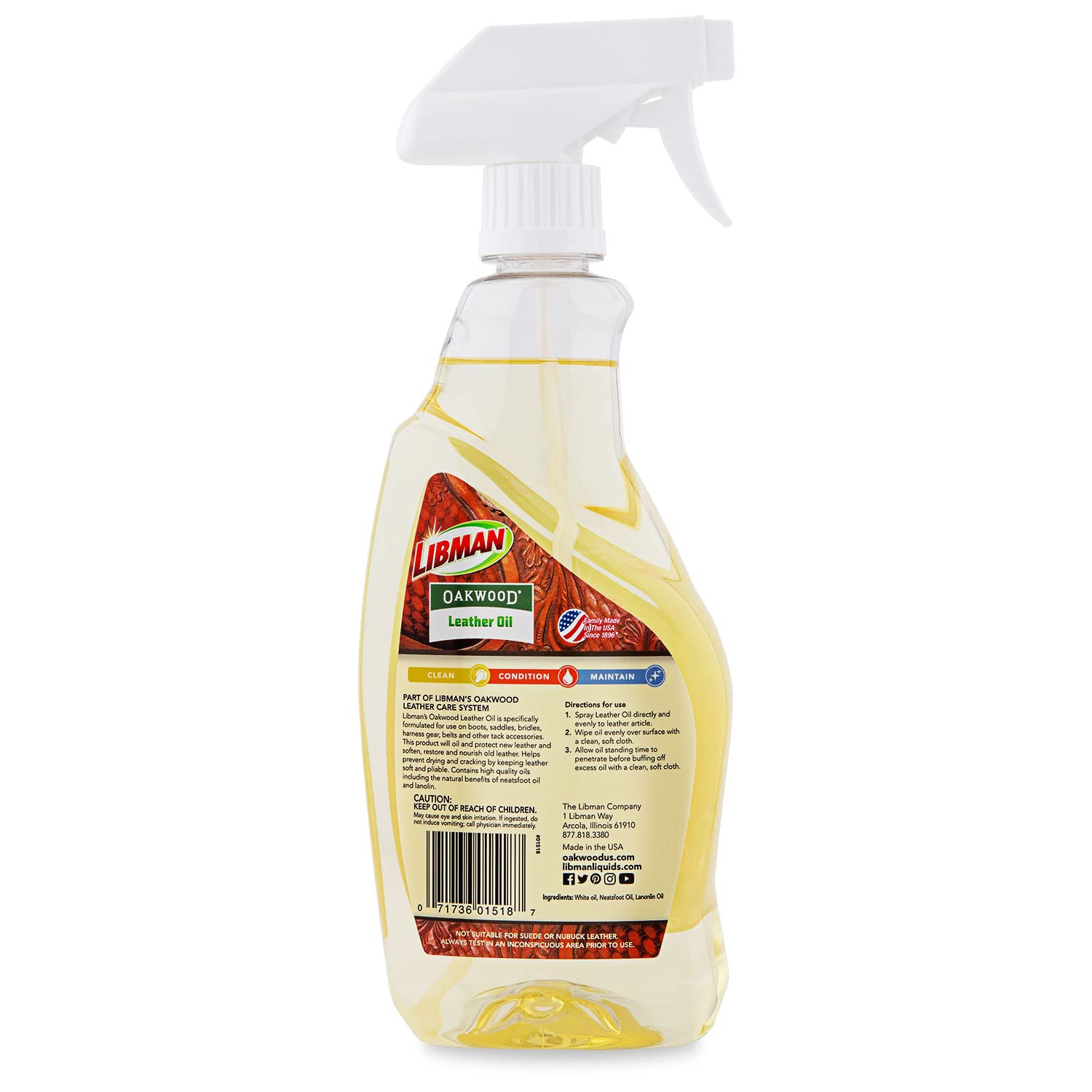 - PART OF LIBMAN’S COMPLETE OAKWOOD LEATHER CARE SYSTEM: Use with Libman’s Oakwood Glycerine Leather Cleaner, Leather Conditioner, Leather & Synthetic Wipes, and Leather Oil for the perfect performance and preservation of your leather tack.